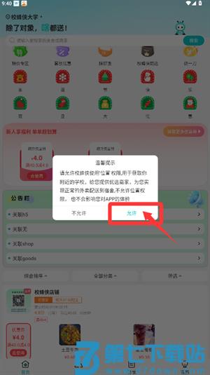 2、成功登录后在提示框中点击允许,授权应用获取当前位置信息。