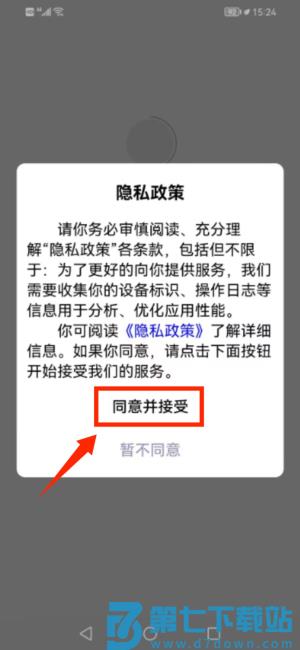 1、首次启动应用,请在隐私政策弹窗点击同意并接受。