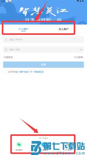 2、在登录界面选择个人或法人用户类型,也可使用第三方账号登录。