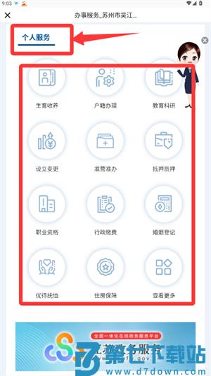 4、进入个人服务页面,可选择生育收养或户籍办理等具体事项进行办理。