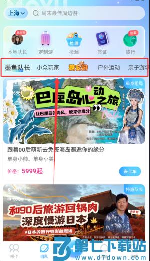 3、组队板块包含墨鱼队长带队、小众玩家聚会、携宠出游及户外运动等特色活动。