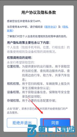 1、首次启动需在用户协议界面点击确认按钮进入应用,系统将自动加载租车服务模块并开启定位权限。