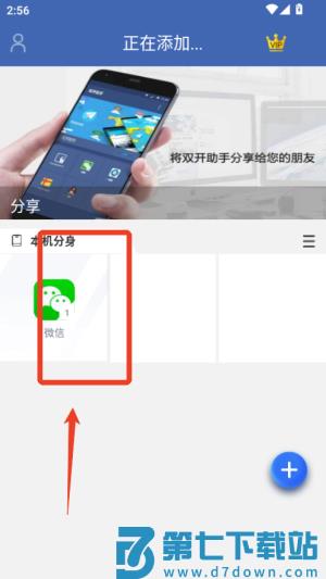 1、添加双开应用,打开软件后点击添加按钮,从应用列表中选择需要分身的社交或游戏应用,比如微信或抖音。