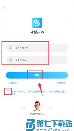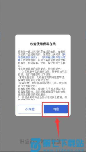 1、启动供零在线应用,确认使用提示后进入登录界面。
