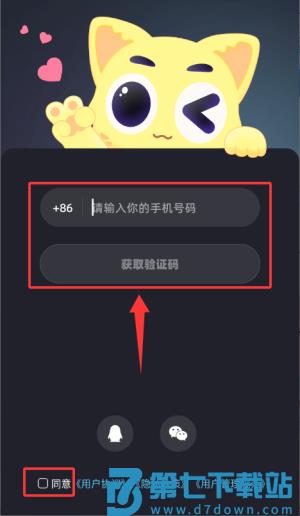 2、输入手机号并同意相关协议,获取验证码完成登录。