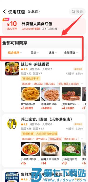 2、在商家列表可按多种条件筛选,选择心仪店铺进入。