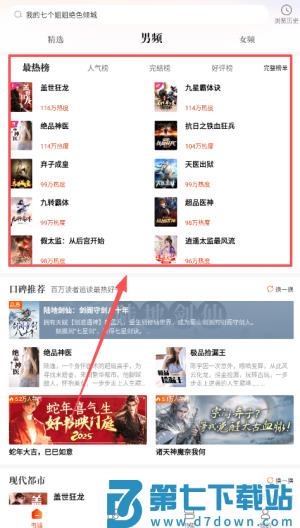 6、男频频道:独特的男频小说资源,让你感受独特的小说风格。