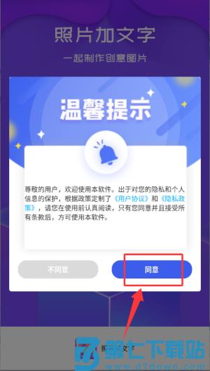 1、在温馨提示中点击"同意",即可进入应用。