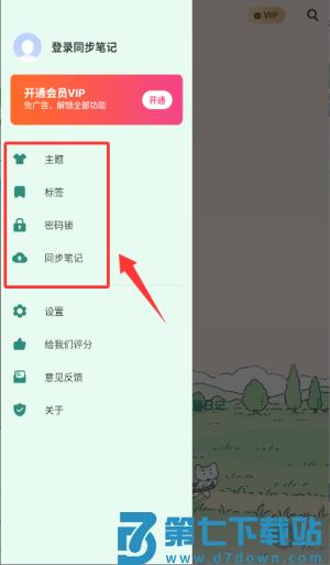 3、通过侧边栏设置主题、标签、密码锁及笔记同步功能。