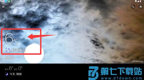 1、打开应用,即可查看当前区域的温度与天气实况信息。