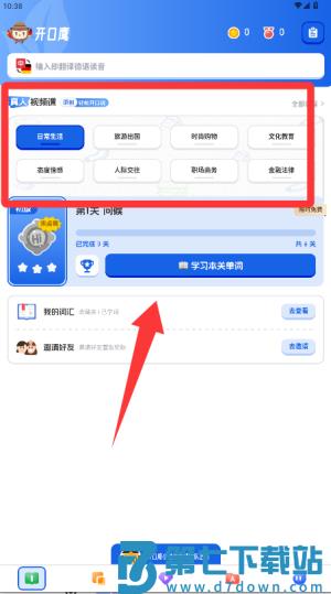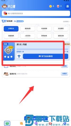 2、选择你感兴趣的课程开始学习,通常包含词汇讲解、语法分析和情景对话等核心内容。