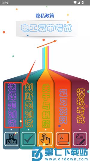 1、打开电工复审考试模拟试题app后,先选择你报考的电工级别,系统会自动匹配对应题库。
