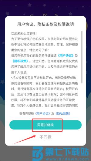 1、勾选同意服务协议后,即可进入应用主界面。此操作代表您已阅读并确认相关条款,正式开启身心健康管理之旅。