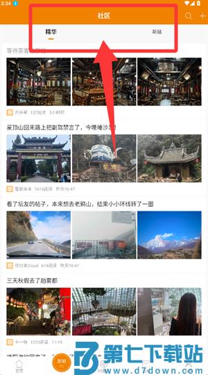 2、登录成功后进入社区首页,可浏览精华帖或最新动态等版块。