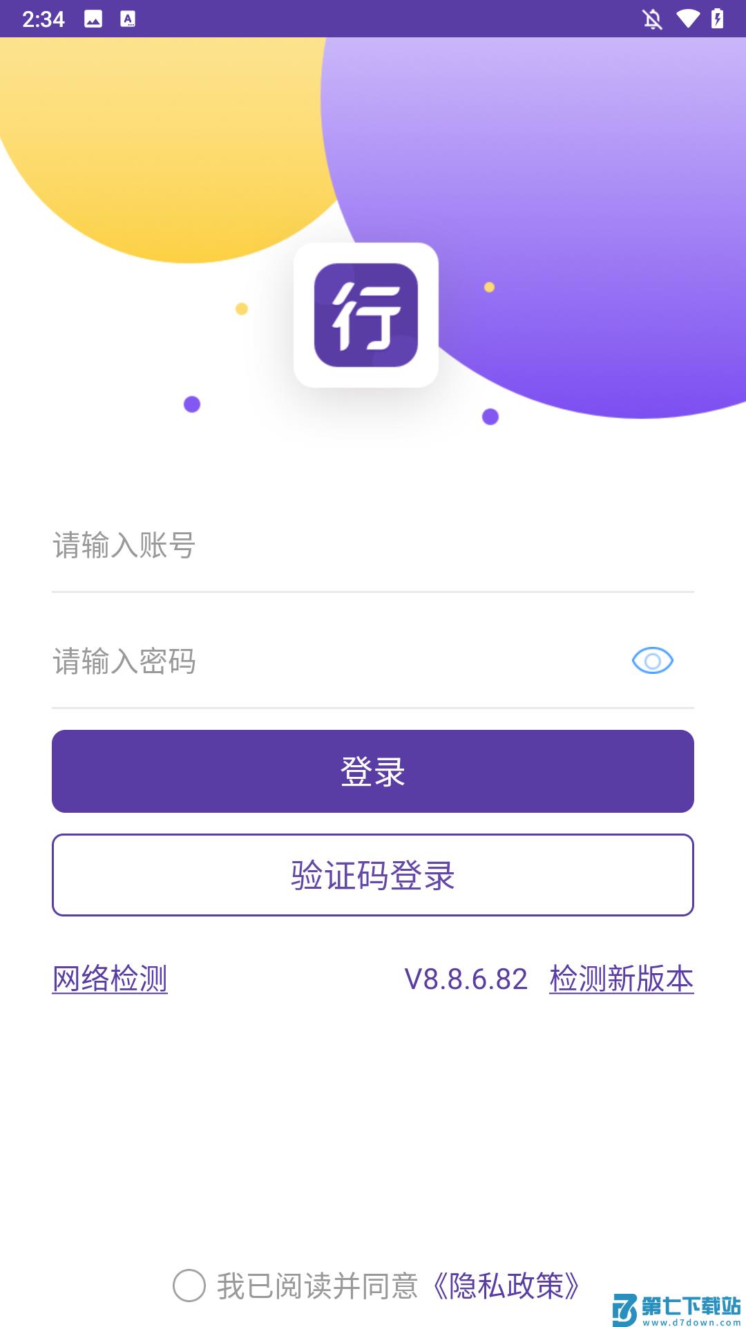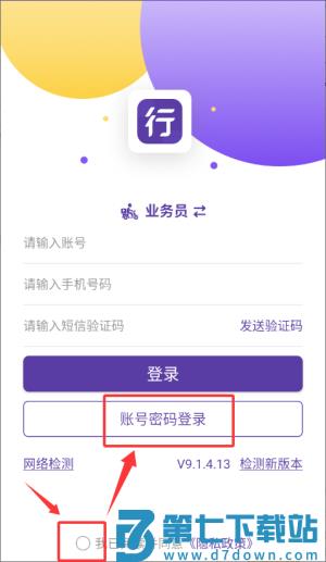 2、勾选隐私政策后选择"账号密码登录"方式。