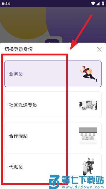 2、如果是合作驿站,选择验证码登陆,点击业务员三个字可以切换。