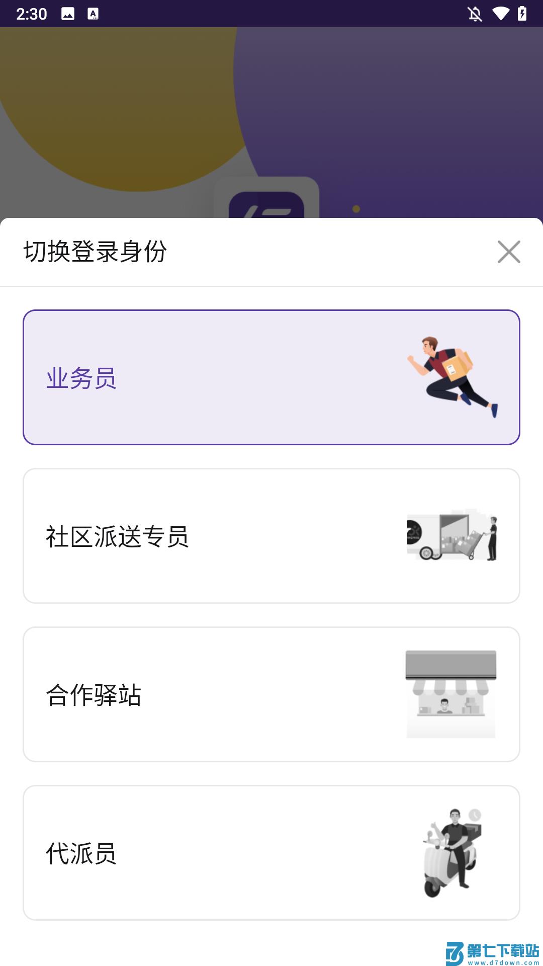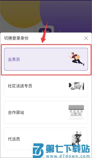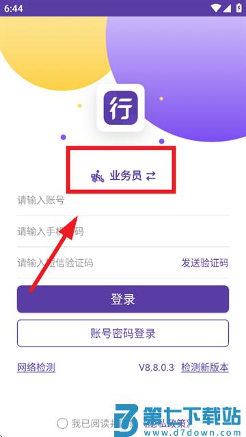 1、在登录身份选择界面点击"业务员",进入对应登录页面。