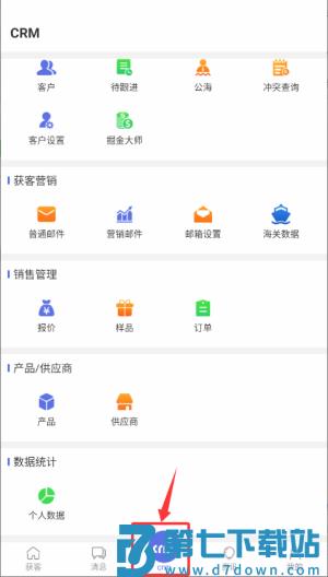 3、点击"crm"板块,进入客户关系管理功能界面。