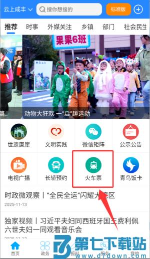 3、在首页点击“火车票”即可进入查看火车票信息。