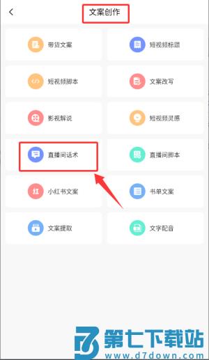 3、点击"直播间话术"选项,开始话术内容创作。