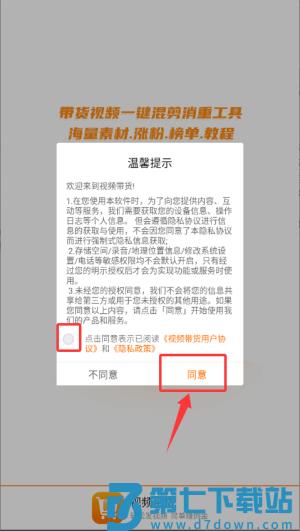 1、在温馨提示中勾选协议后点击"同意",即可进入应用。