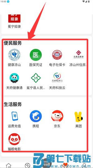 3、返回主界面选择便民、生活等服务项目,点击进入功能页面。