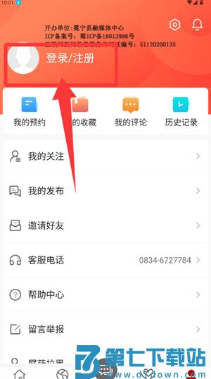 2、前往个人页面点击登录注册入口,即可完成账户验证流程。