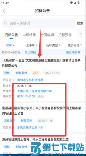 2、查看全国各地招标公告、预告、中标、变更、采购等信息;