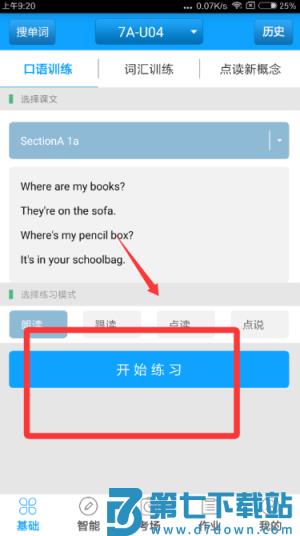 3、进行口语练习时,进入人机对话模块,根据提示完成朗读或问答,系统会智能评测发音并给出改进建议。