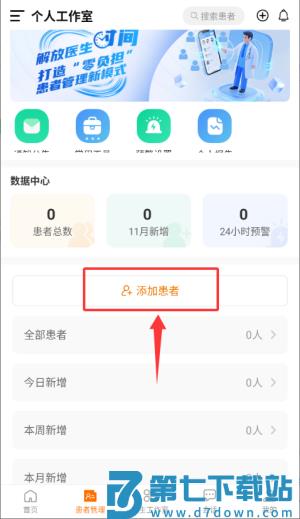 3、于患者管理界面点击添加患者,进入信息录入页面。