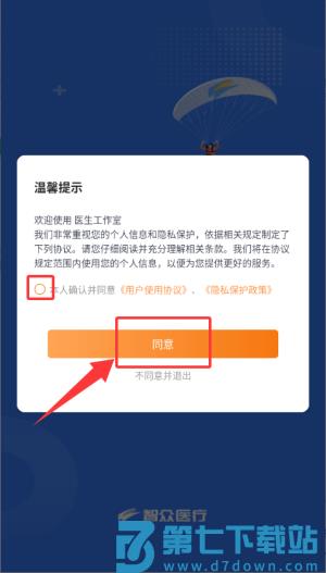 1、在温馨提示中勾选协议后点击"同意",即可进入应用。