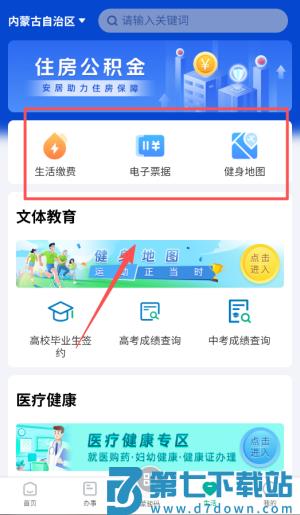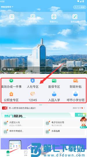 3、选定站点后,首页显示人社服务、医保服务等专区便于按需使用功能。