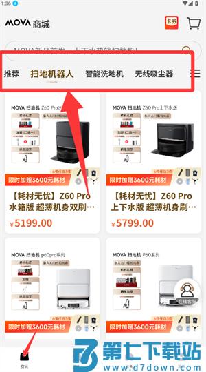 2、进入商城导航栏选择扫地机器人分类,浏览商品列表。