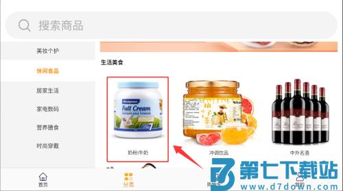 2、于分类界面选择"奶粉 | 牛奶"分类,浏览商品列表。