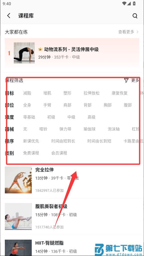 1.超过200节健身课程:包含减脂HIIT、Tabata、增肌力量、瑜伽、拉伸、热身、生理期、产后恢复……