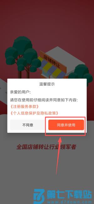 1、在温馨提示中点击"同意并使用",即可进入应用。