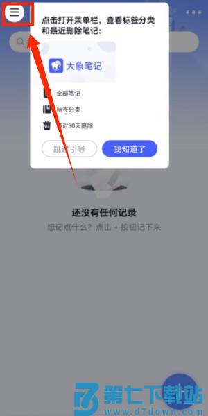 【1】点击打开菜单栏,查看标签分类和近期删除笔记