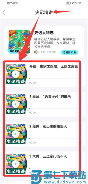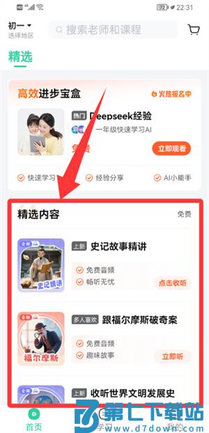 2、进入首页精选板块,查找史记故事精讲等学习资源。