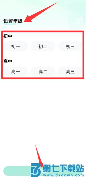 1、在应用内设置学习阶段,选定初中高中具体年级并确认。