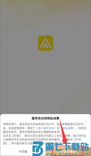 1、在服务协议和隐私政策提示中点击"同意并继续",即可进入应用。
