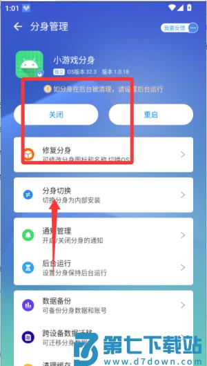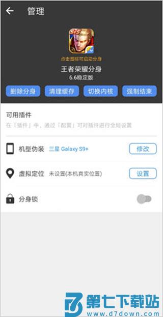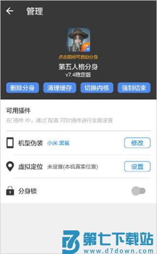 4、然后你会看见首页里面出现一个分身,点击管理会出现一个机型伪装,点击修改,输入伪装后的机型名称,再点击启动机型伪装即可完成。