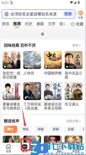 3、进入“听书”频道,选择相声或评书分类,点开作品后调节音质为高清模式,即可享受沉浸式音频体验。