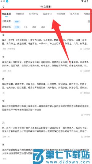 2、从好词好句、名言名句等分类中,筛选合适的写作素材内容。