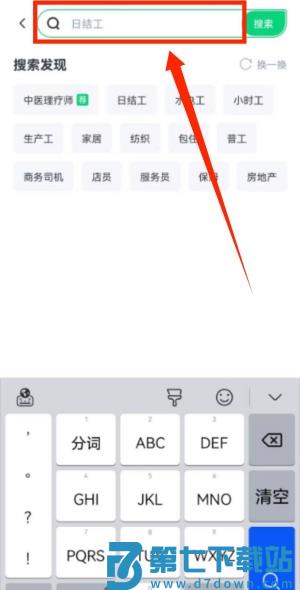 3、点击使用放大镜,输入关键词找工作。
