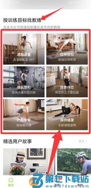 2、在首页按训练目标选择类别,进入教练列表页面。