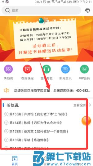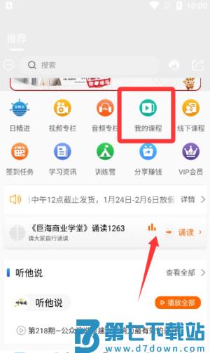 1、打开巨海商学院app注册,进入课程中心,根据分类或搜索找到你感兴趣的视频或音频课程,点击即可开始在线学习。