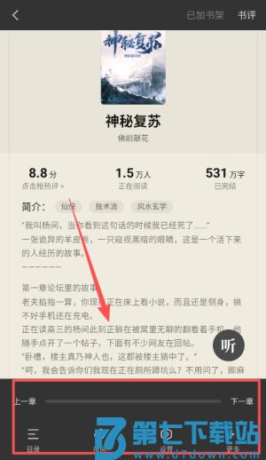 3、阅读时记得调整设置,点击屏幕中央调出菜单,你可以设置字体大小背景颜色和翻页方式,让阅读更舒适。