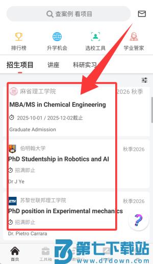 1.提供全球各个知名高校的申请项目信息。