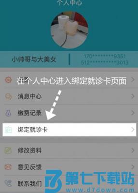 1、下载安装华医通之后,进入“个人中心”点击“绑定就诊卡”页面。