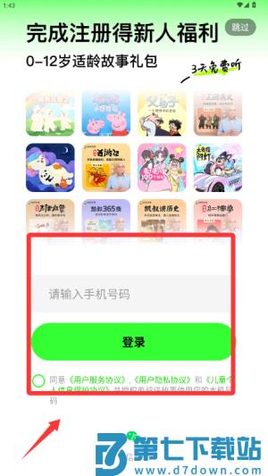 1、打开软件后先注册账号,可以选择手机号一键登录,登录后填写宝宝年龄,系统会自动推荐适龄故事内容。